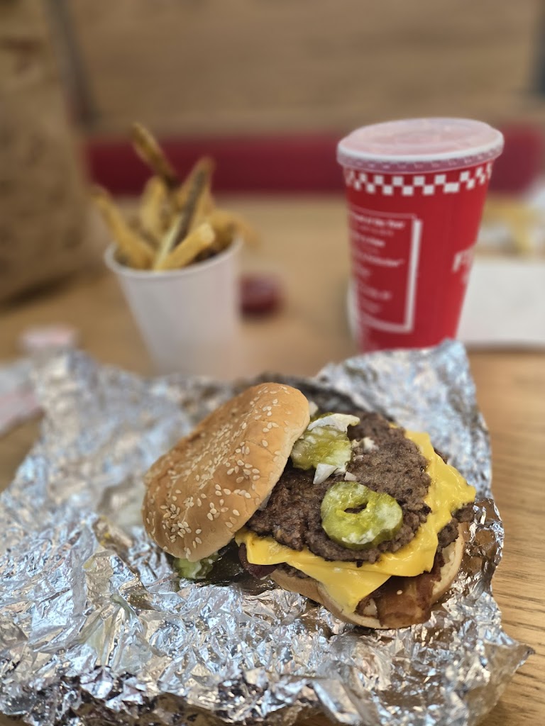 Only thing i am not crazy about at Five Guys is the cost. 2 burgers, 1 large fry, 1 soda, and 1 water=$35. And that's before the tip. It's a burger joint, not a steak house. Guess I should be glad it's not a steak house. Haven't eaten a steak out in 3 years now cuz I can't afford to