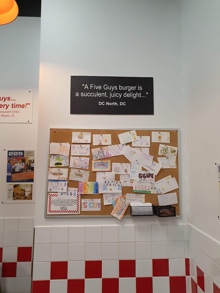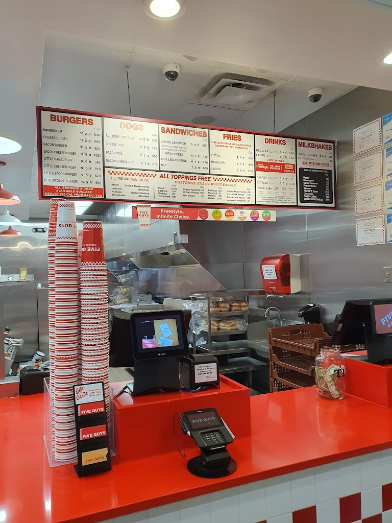 This Place was super Clean. Their Employees were friendly, on point with taking everyone's orders, and treated Customers with respect. This restaurant period Five Guys make the Best Fries in the world hands down!!! Plus they have one of the Biggest Drink selections around. I say everyone should at least eat here once in their Lifetime!!