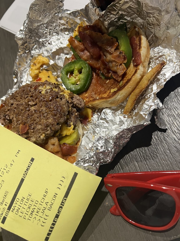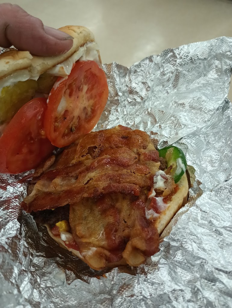 I had a double cheeseburger and a bacon burger and a regular fries. The food was pretty good but costed too much money. I spent $27 on these 3 things. I could do better at a nice restaurant where you get served.