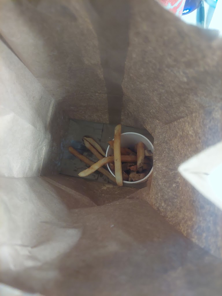 I ordered a cheeseburger hot dog and large fry online. When I got to the restaurant, they handed me my bag and there were no fries in the bag. Luckily, I caught this before I left the restaurant. When I got home, the hot dog had no bun. I tried to call the restaurant to report this. After 6 attempts, I gave up. Not only did they not answer the phone but they didn't have voicemail setup. This will be my first and last visit to this restaurant.