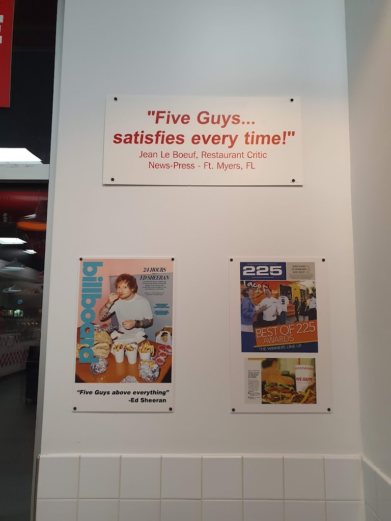 An aside: Look at the headlines / articles touting Five Guys' greatness in the bathroom. They tend to be from the 00s. One even called Five Guys "Inexpensive". I'm not sure reminding the consumer of how great Five Guys used to be is in their best interest.