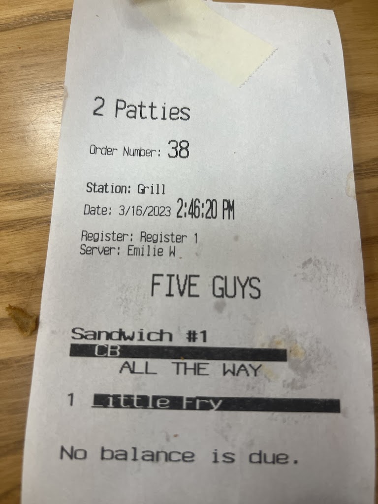 As usual, everything tastes good, but the price is crazy. I know everything is more expensive, but Five Guys has gone from being affordable like a fast food place to being more expensive than even some sit-down restaurants. Add to that the employees asking for you to buy fries or a milkshake, and it can get frustrating.