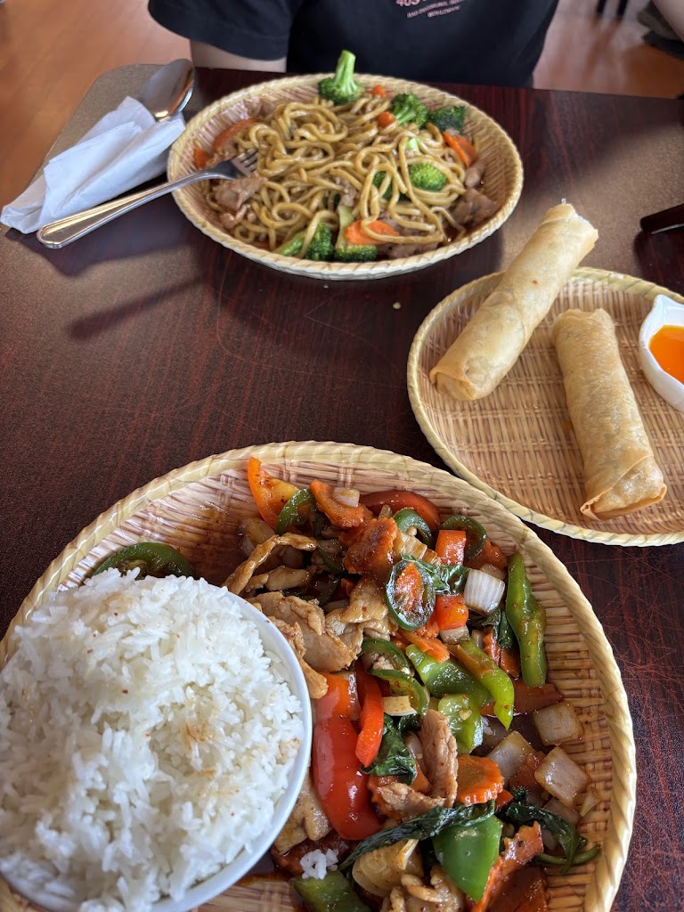I got the basil stirfry, 2 eggrolls, lo mein, and the pad thai. The lo mein just tasted like straight up soy sauce, but the stirfry was great. The pad Thai was ok, not too flavorful. Overall the service was good! But it is pretty expensive for the amount of food.