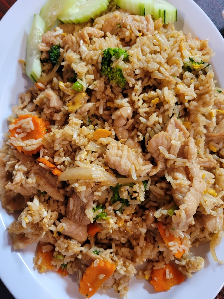 I got pork egg rolls, crab Rangoon and chicken fried rice portions was substantial and the food was made fresh but quickly. The Taste was good not the best I've ever had but it was good.