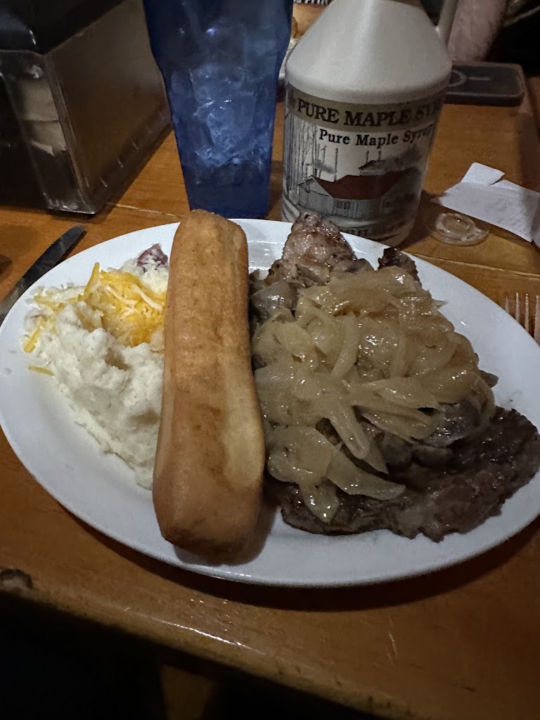 The steak was well seasoned but mostly gristle. I enjoyed the portions I could chew very much.