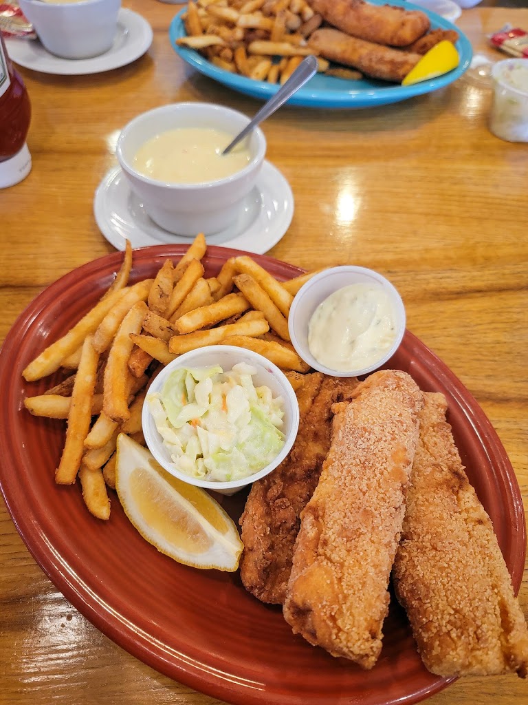 Fish fry was pretty meh. Cod was over breaded and fried. Not much taste. Our server was pretty terrible. Hostesses and other servers seemed to be good at their job but ours took forever and rarely checked on us. French onion soup was quite good. Fries were pretty bad. Rolls that come with the meal had 0 flavor even with a lot of butter. Wouldn't eat here again.
