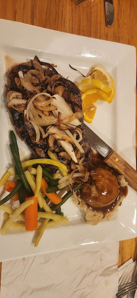 Truly a 4.5 star. Took a while for the drinks to come ( Bloody mary and Blackberry old fashion) but the wait was worth it. Highly recommend either drink. Each had the Ribeye dinner. Came with soup or salad choice of potato as well as side of veggies and a bread basket. Was very good. One steak was a bit more overcooked, but didnt really hinder anything. I do have to say I wasnt a big fan of the garlic smashed potatoes, so I would opt for something else the next time. Staff was a bit slower, but it was very busy so totally expected a delay ( it wasnt very long). Fried mozzarella wedges were a hit ( dip in the ranch for sure (some of the best ranch ever)). Overall a very nice place to eat, I'd highly recommend trying out.