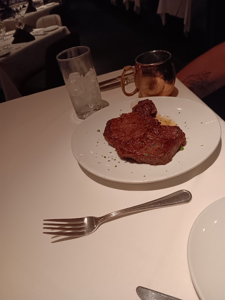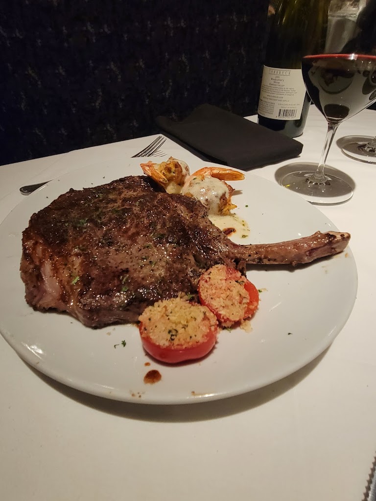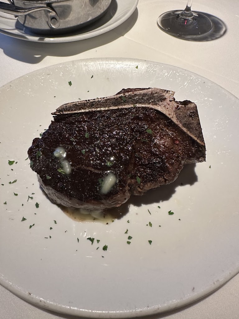 The primary reason for our visit was the steak, and unfortunately, this is where the evening fell apart. I ordered the Cowboy Steak (at a price point of $118), and it arrived noticeably burnt and heavily overcooked. For a prime steakhouse, especially given the significant cost of the cut, receiving a ruined steak is simply unacceptable. The quality of the cooking did not match the premium price tag.