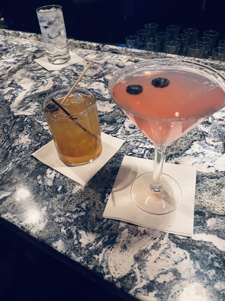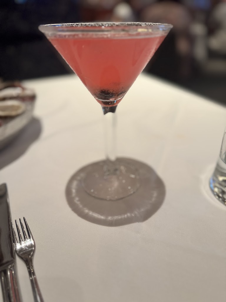 Both of us opted for seafood dishes, and they were absolutely delicious--cooked to perfection. My wife enjoyed a French 75, and I had a Blueberry Lemon Drop. Both drinks were well-crafted and complemented our meals perfectly.
