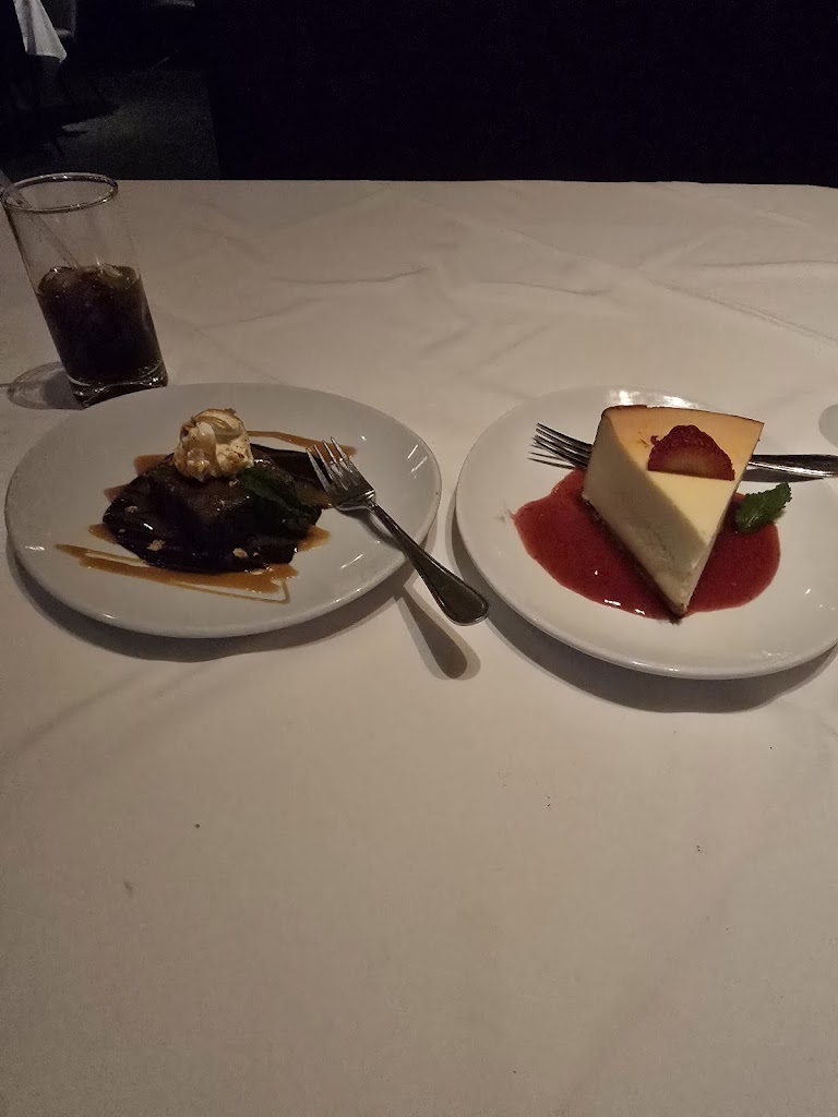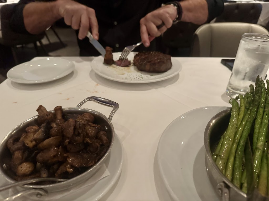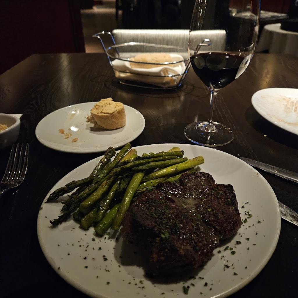 For dinner, I had the 8oz filet with scallops, my husband had the ribeye, and we had the mushrooms and asparagus as sides. My filet was okay, I wouldn't order it again. The scallops were smaller than I anticipated they would be and tasted a little fishy.