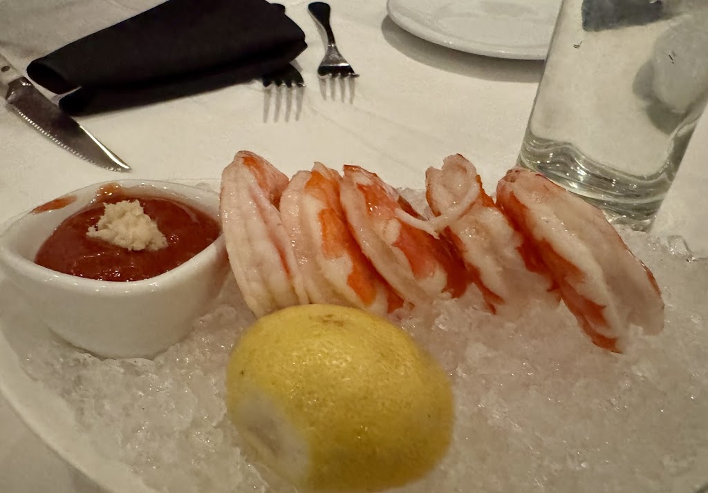 For an appetizer, we ordered the shrimp cocktail. The shrimp were small and not as good as the ones I buy from the grocery store. The cocktail sauce wasn't spicy enough for me, it tasted kind of bland, even with the horseradish on top of the sauce.