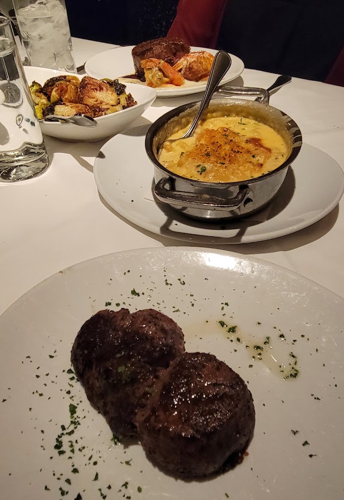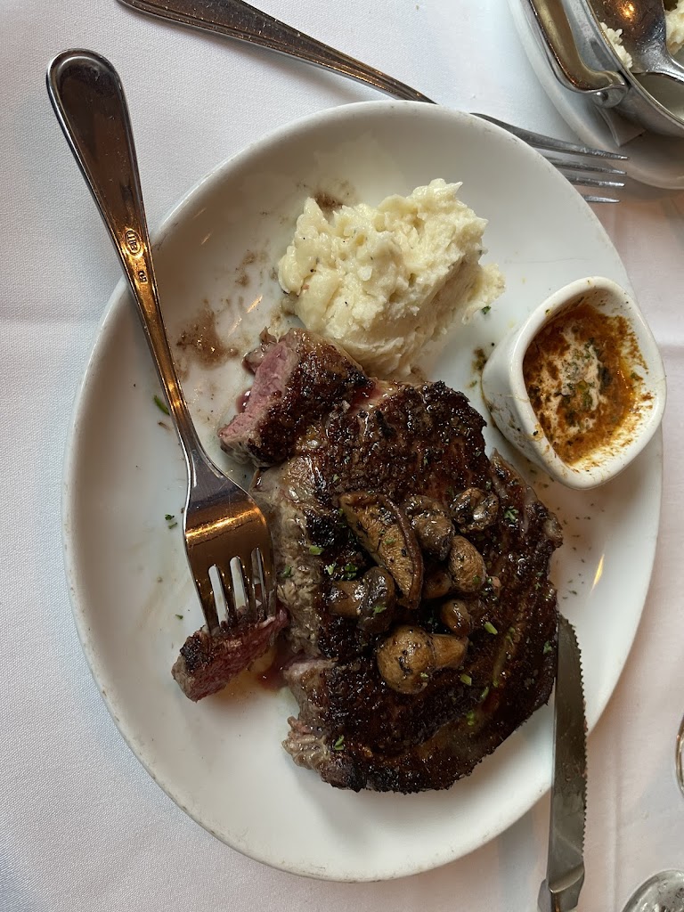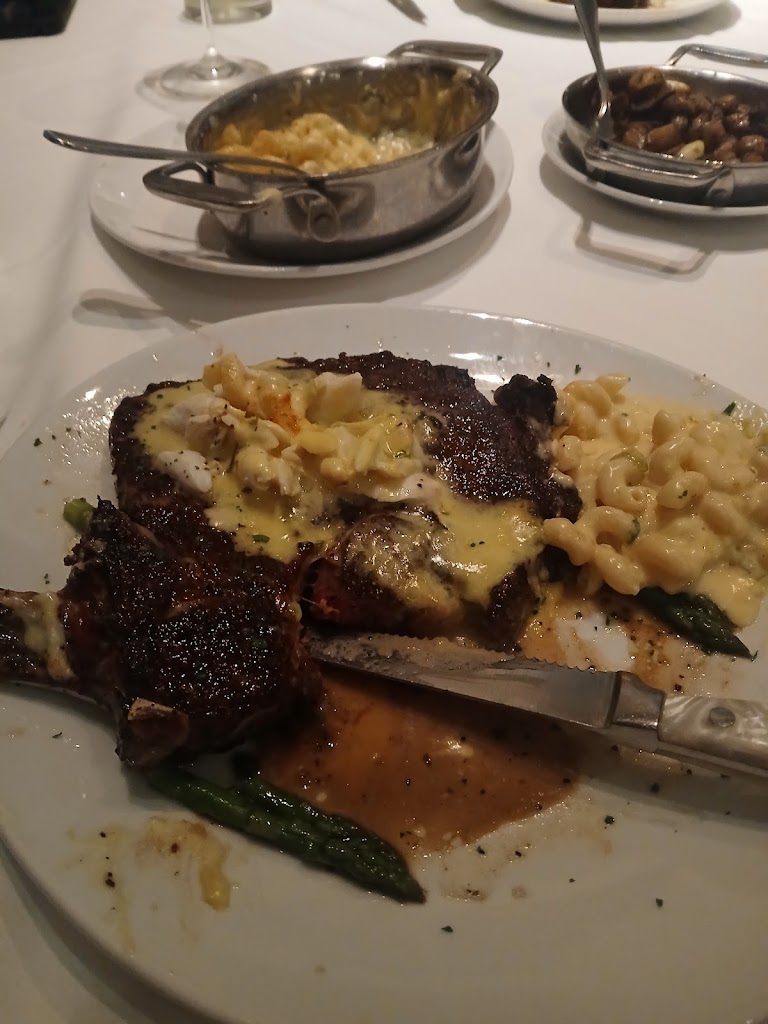 My husband really enjoyed his ribeye and said it had great flavor and was cooked perfectly. We both thought the sides were okay- as expected, nothing memorable about them.