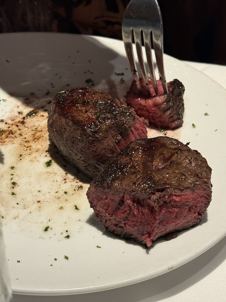 Great steaks. Flavorful and cooked perfectly. Service was good though our waiter was missing in action after the meal was served.