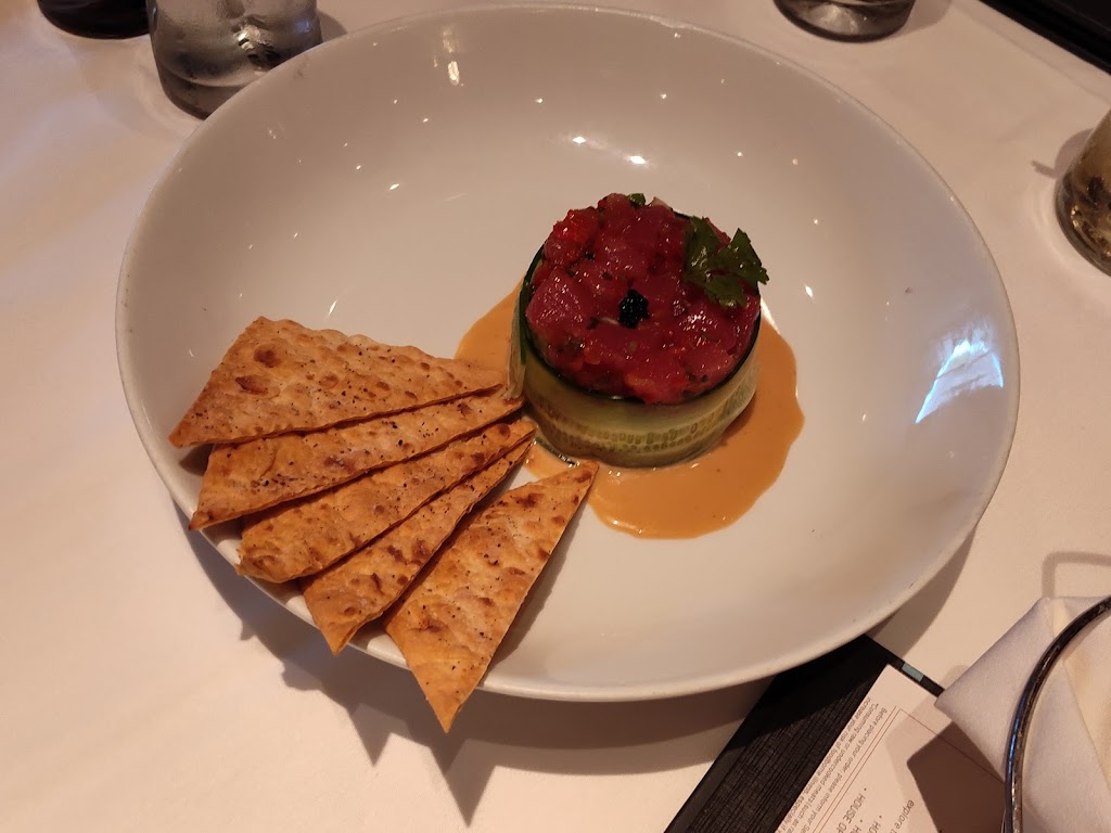 Seafood salad was overload with old bay so much (dry spice on top of chilled Seafood) I had to send it back and I'm an island girl (we like hot). Some lunch selections need to be on bar menu as the night menu at bar is old and boring and I frequently don't want an entire big meal at 8pm ...tartare would be a good add.