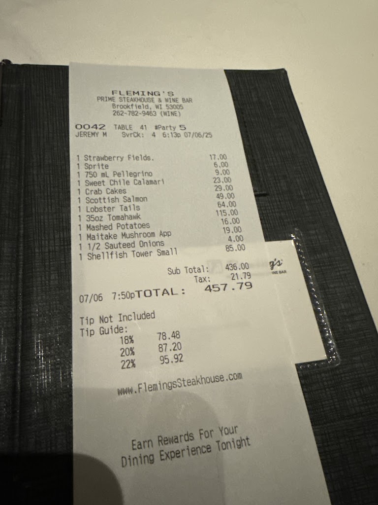 While Fleming’s delivers on top-tier service, the most critical element, the cowboy steak was severely lacking in quality control. When a signature $118 steak is served burnt, it significantly undermines the value and the reputation of a fine dining steakhouse. I was very disappointed and would hesitate to return given this experience.