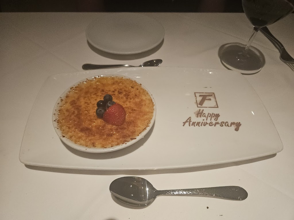 Food was cooked perfectly. However, the service did not meet our expectations. The server was a bit brisk and superficial. When you pay that much for dinner, I expect a warm and welcoming feel. We have eaten at several Fleming restaurants over the years. This is the only one where the service was not stellar.