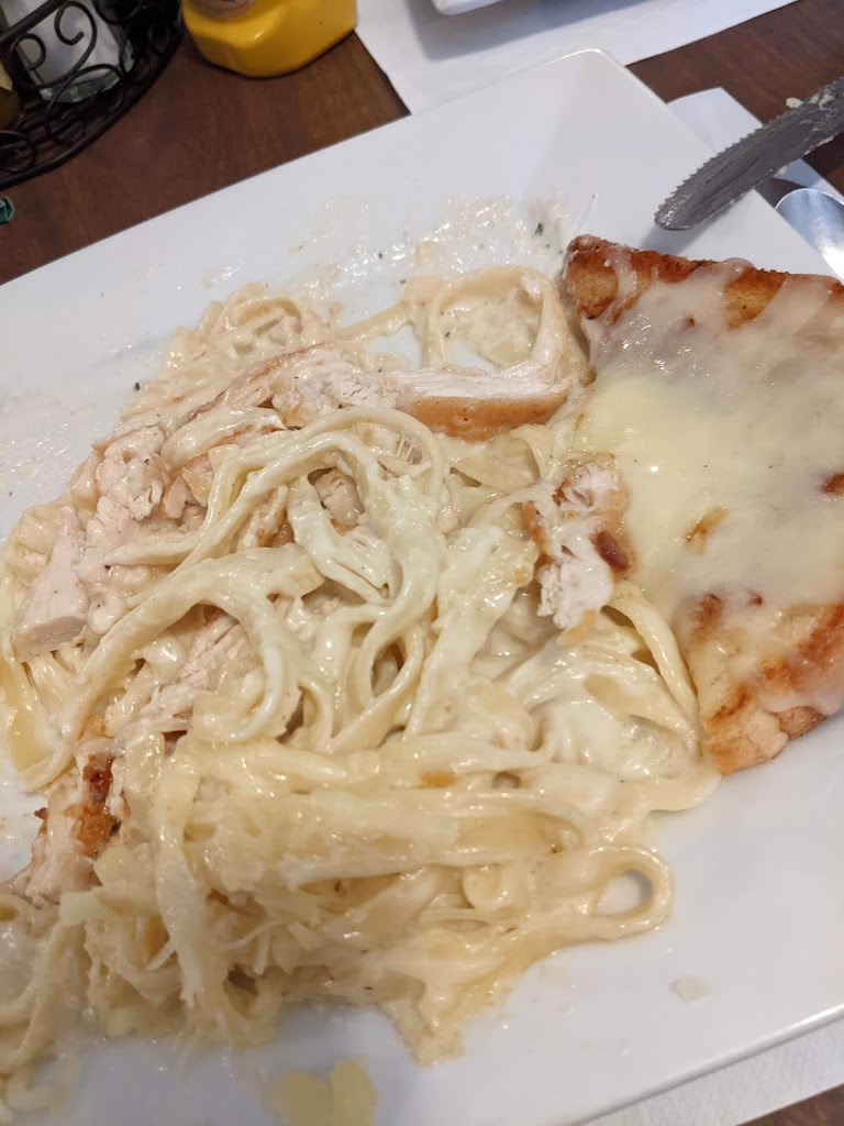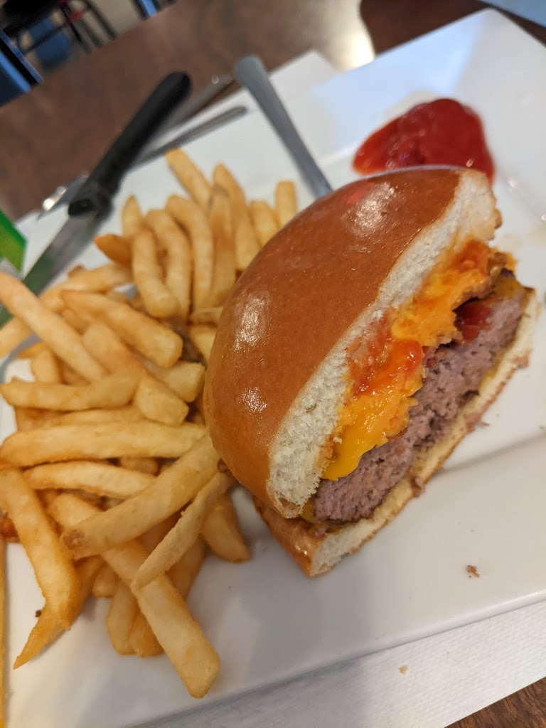 Delish! Bacon cheddar burger & fries were great and the chicken Alfredo was wonderful too! Loved the side of cheesy garlic toast!
