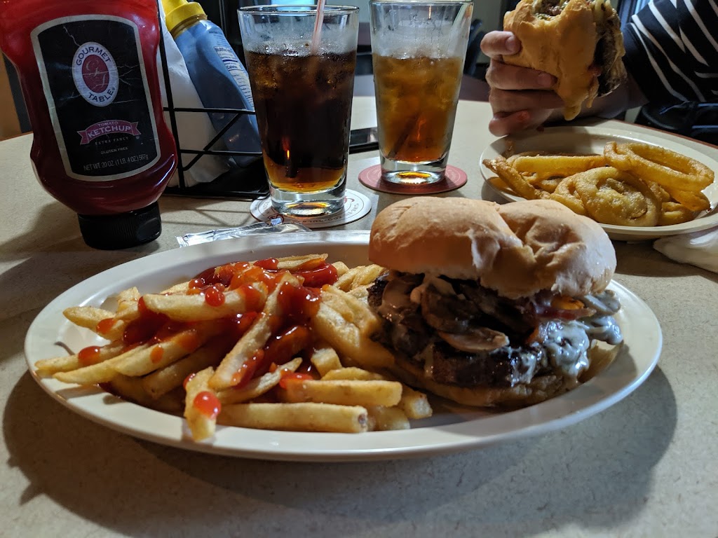 The smell of the carpet is the first thing you notice when you enter, it smells nauseating. This might be overlooked if the food and service were great. The bartender barely brought herself to speak to us, even when we tried to spark up conversation, and spent our entire visit with her back to us, watching a movie. My burger was pretty good but the side of mushrooms were chewy, seemed not fresh. Overall, the smell and terrible service will keep us from going back. There are plenty of good places to eat nearby where the atmosphere and service are inviting.
