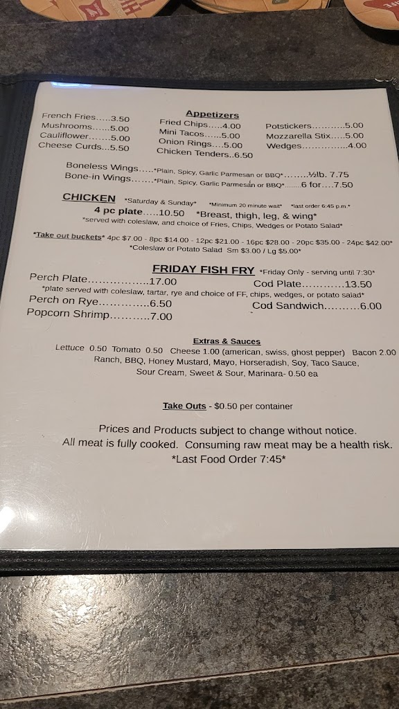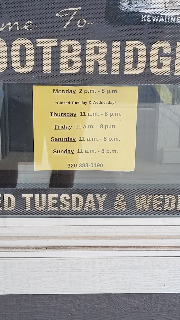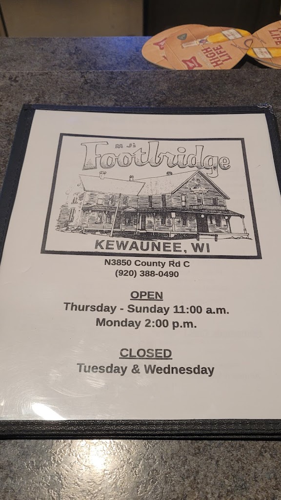 We almost turned to leave as we entered Footbridge. There were dead bugs in the outside foyer and a steong smell of cigarette smoke on entering—apparently from the clothes of previoys patrons. The service was warm, helpful, and friendly. The fishfry was excellent! The coleslaw was so fresh and not too sweet or creamy. The potato wedges and French fries were perfect. But the perch and cod were the best! Perfectly crispy, no fishy taste, & light! We were referred there by a fisherwoman who likes these freshest of fish. Such a good referral! Very Wisconsin. 3 TVs for good bar viewing.