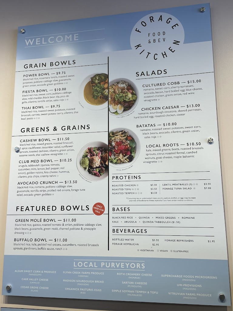 my parents and i love getting salads from Forage!! it is like the sweetgreen of madison! our go to salads are the kale caesar and the beet salad!