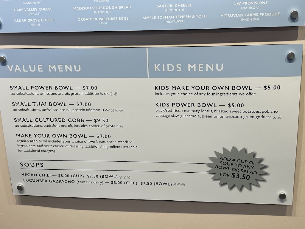 Staff friendly. Clean eco-friendly space. Food great as usual. One of my Favorite places to eat in Madison.