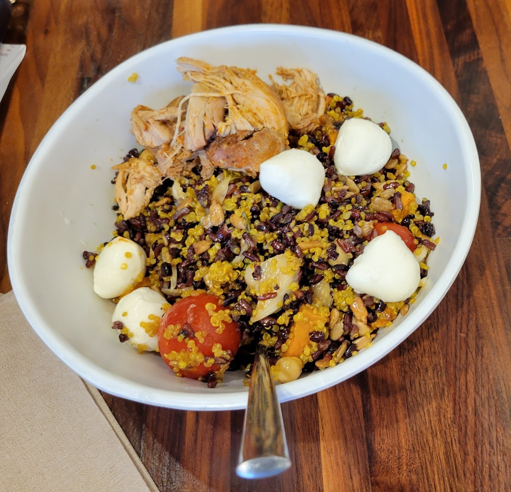 Healthy, tasty food! Fiesta bowl was a bit spicy for our taste, but what you would expect for a Mexican flavored dish. Local roots was just okay. It had beets and feta cheeze in it. The Jerk Bowl with jerk chicken was delicious and very filling. Definitely a good choice. The Thai bowl is always good too! Definitely will be back to this location at Hilldale mall in Madison, WI. Nice outdoor tables to eat at!