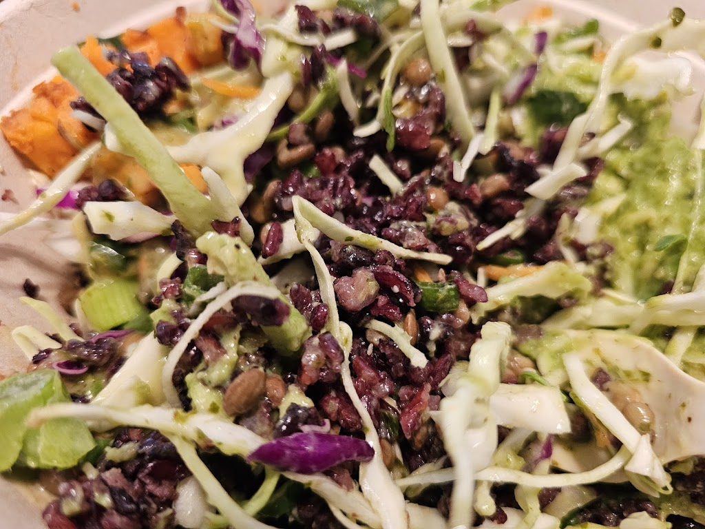 Great blend of flavors and textures. Recommend the Thai bowl with chicken. The small bowl was plenty for one serving. It was my first time trying black rice and I really liked it. I ordered delivery and it was still warm when it arrived.