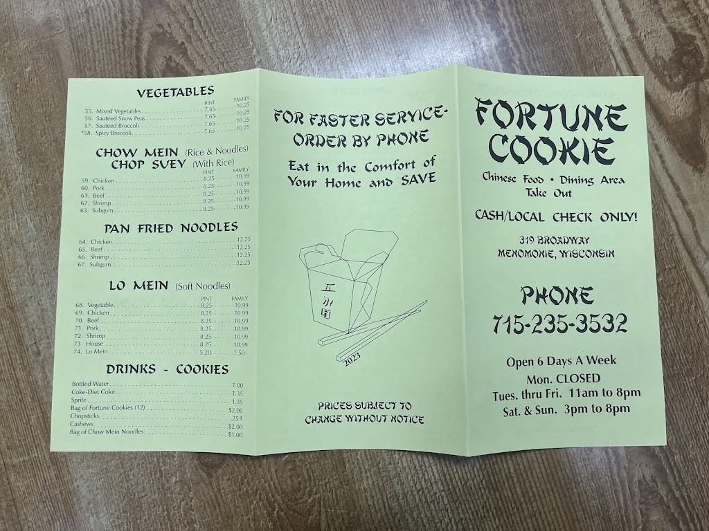 I love Chinese food and their food is good, but I’m not in love with the cash/checks only. I feel like they would get a lot more business living in the heart of the UW STOUT campus! That’s just my opinion tho, they are also kinda reasonably priced, portions could be a little bit bigger on the entree’s but then again my opinion again
