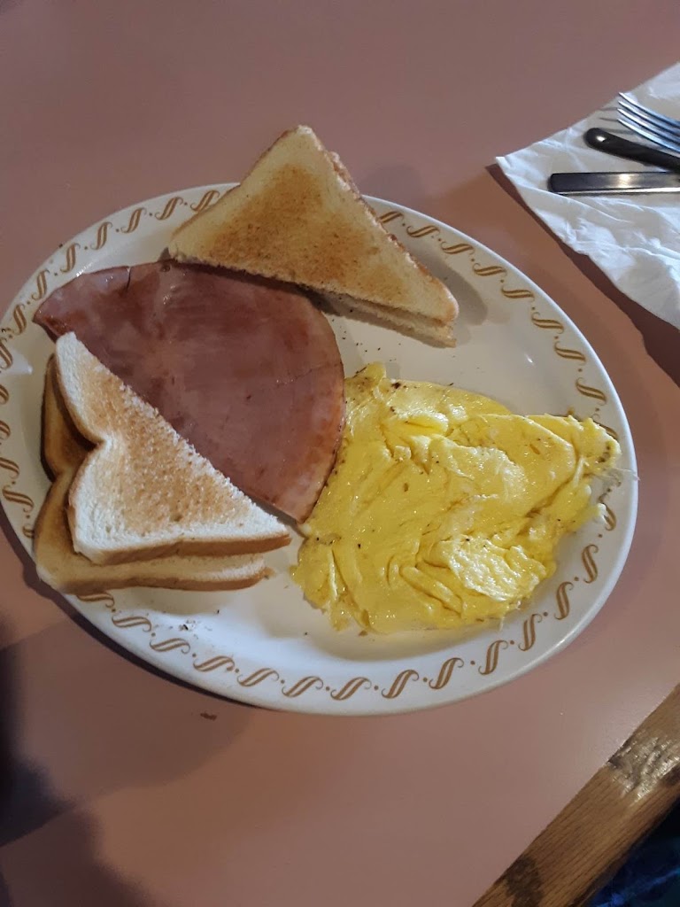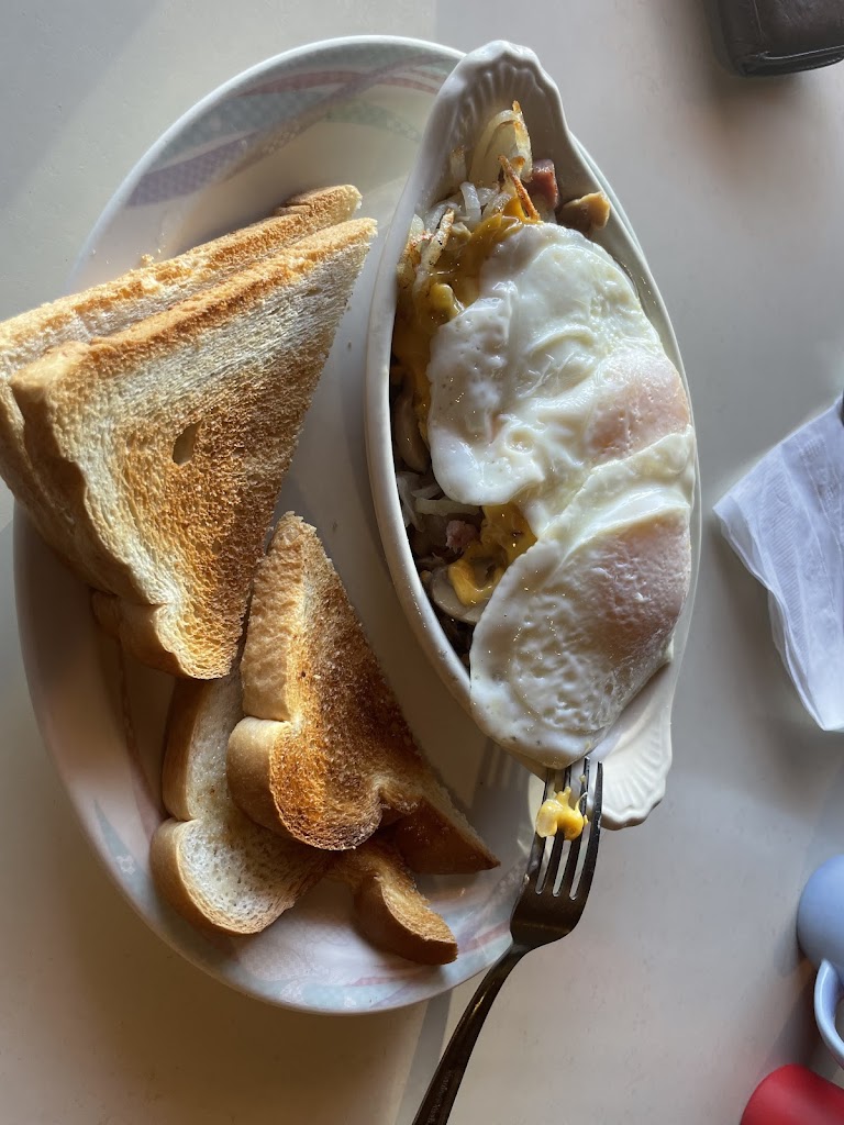 I went there with a friend and every time we would order something we were told they were out of it. Iβve never seen them busy for a long time. I ended up settling for a grilled cheese and she got an omelette. At least they had eggs, cheese and bread. Nice waitress. Only reason they got 2 stars. Change the inside to a non cafeteria atmosphere but first readjust your ordering for food. Couple people who I was with said hey! Letβs try it here! I said no. Would not subject you to that. But theyβre pathetic.