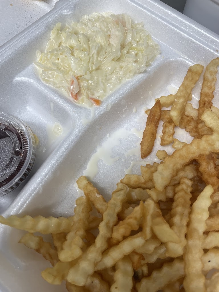 I did not ask for my food to be swimming in coleslaw juice. It ruined my meal, seeing as I didnβt ask for coleslaw, and absolutely cannot stand the stuff. Every fry is soaked, and only 3 mediocre chicken tenders are even edible at this point. If I liked coleslaw I might have less of a problem with this, but Iβm not even fully comfortable saying that because everything is so soggy. Please do better at informing people that coleslaw comes with it, and donβt fill it to the brim causing it to overflow. Apologies for the attitude, but this was truly disappointing.