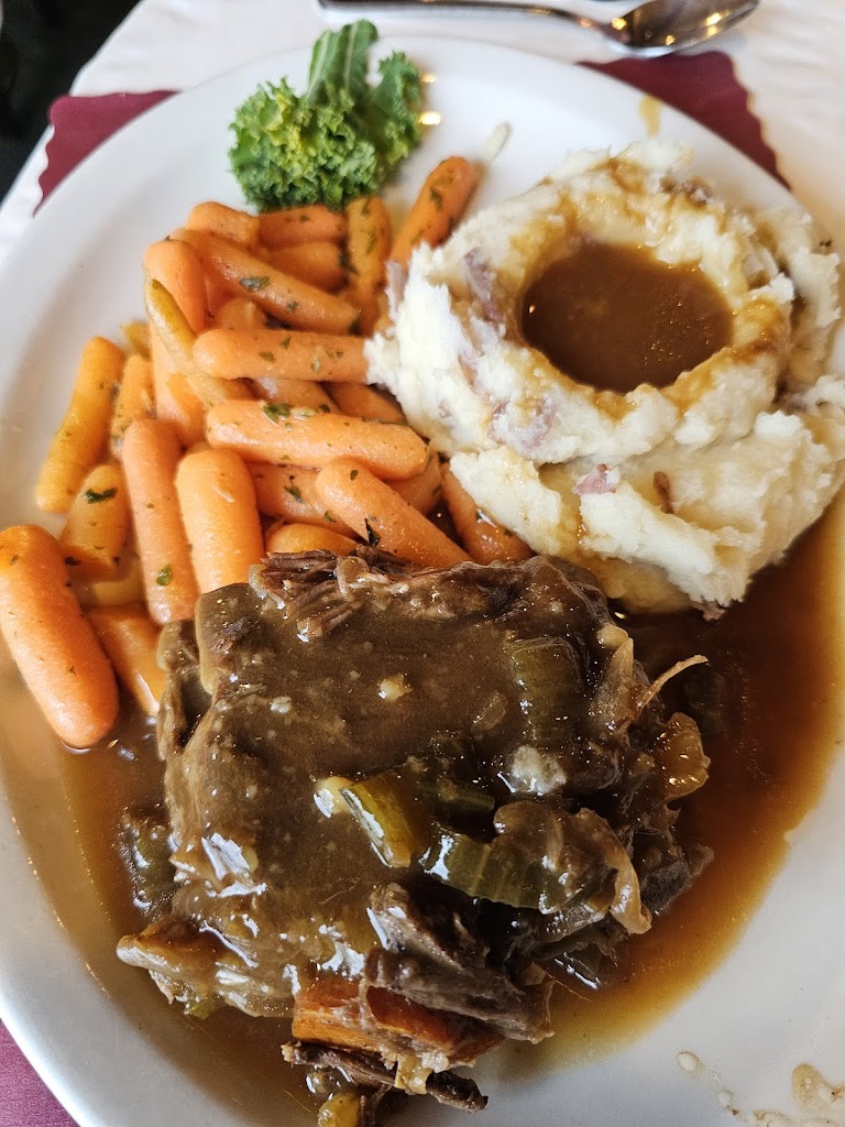 Our meal (pot roast) was excellent. The service was speedy and the view spectacular. We'll be back!