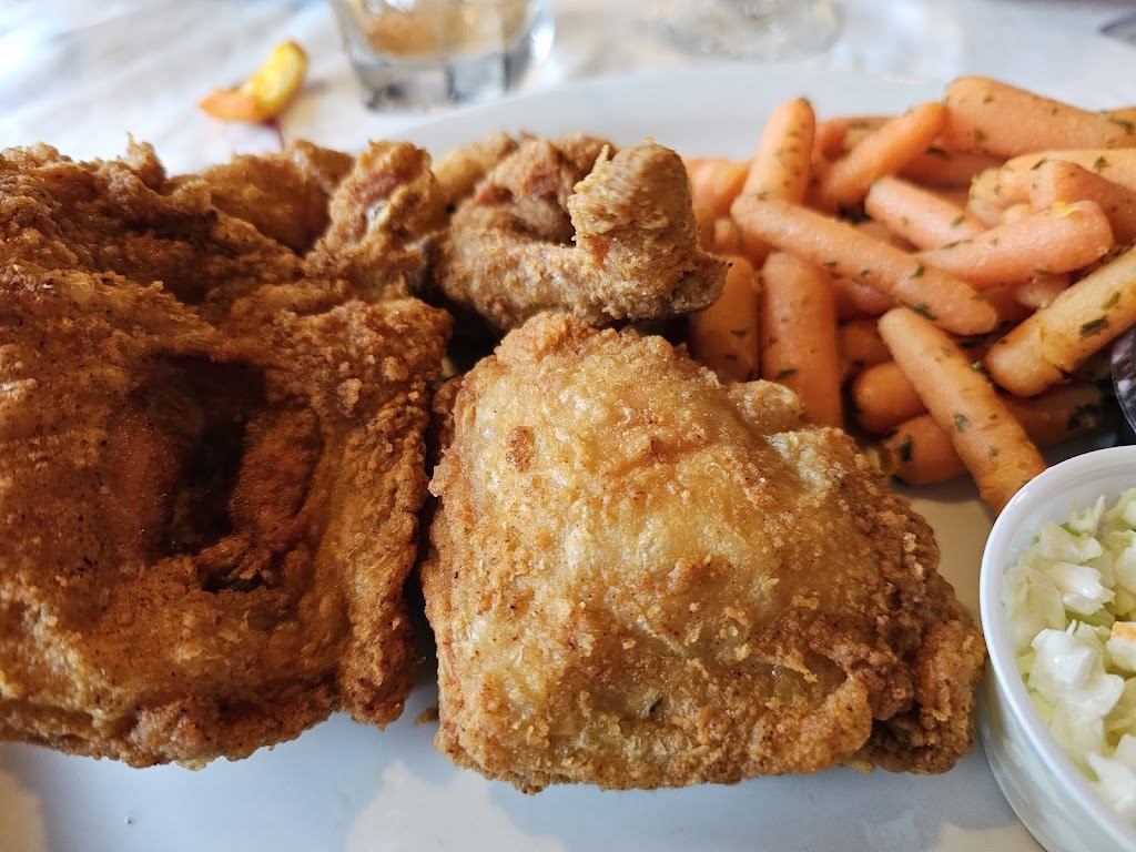 The food and drinks are outstanding as well as the service. We added on to the size of our party and they accommodated with only a short wait. The dining room is not large but the outside patio is beautiful and adds quite a bit of seating. The fried chicken is absolutely scrumptious and the portions are ample. I took home what I couldn't eat. Fair prices and lots of daily special dishes not found elsewhere.