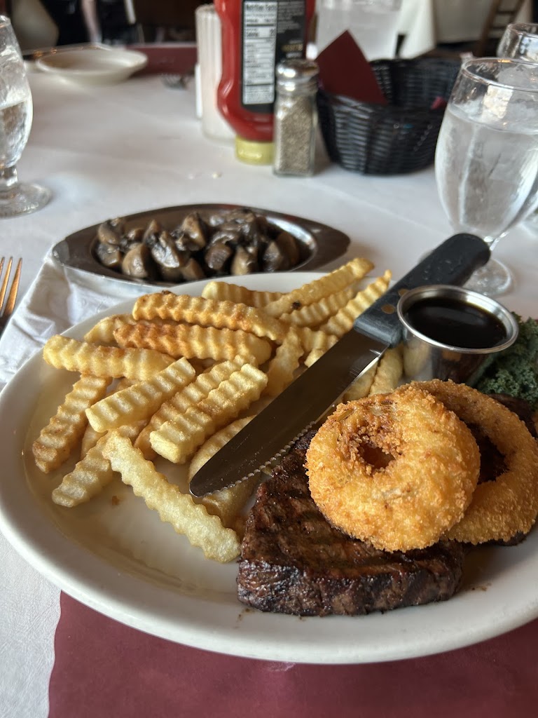 Always outstanding steaks and lobster. Service is always good, but there is always a wait to get a table. Get there early at 4-4:30 to get a table in the first seating.