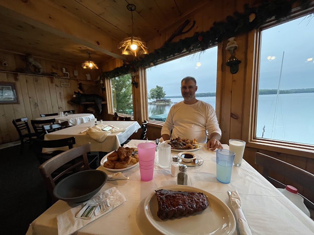 Excellent food and service. The owner was very nice and brought out a tray of toys for our daughter to play with while we waited for dinner. We had perch and lobster that were perfect, and the soup was really good too. A classic supper club just how you want it to be. Great views too.