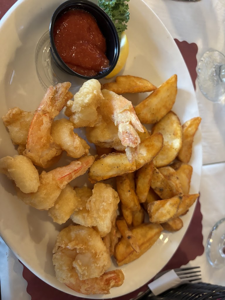 Dinner and cocktails were delicious! Visited from Chicago and we loved our dinners. The jumbo shrimp were very yummy, loved the fish as well. The escargot was a delicious appetizer, especially dipping the breadsticks in the butter! We also got the tacos and they were tasty. The chocolate cheesecake was incredible. Everyone else got the prime rib dinner and the portions were massive and everyone enjoyed them! Great experience.
