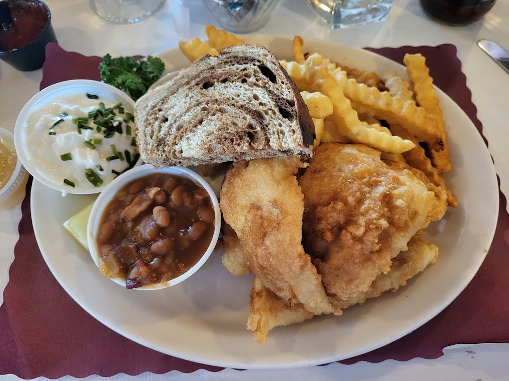 Friday night Fish fry was very good. Four nice pieces, beer battered in light coating. Many choices of potato. We had the potato pancakes, which are a nice treat and not available everywhere. Also came with other sides including excellent home made baked beans. This restaurant runs a tight ship. Even though they were packed, we only waited a short time at the bar before we got a window table with view of the lake. Friendly staff. Excellent service. Come as you are and enjoy.