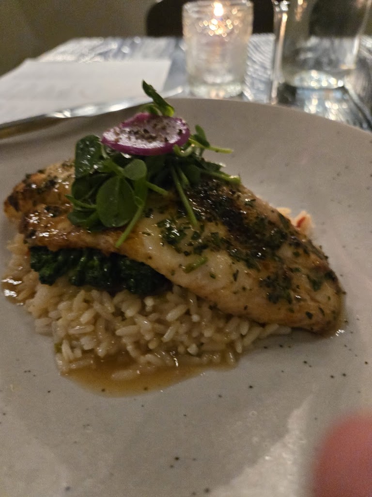 Unfortunately we were seated right by the door on a very cold evening. Our reservation was for 4:15 and we were there a few minutes early. Only two tables were occupied but the server said we couldn’t be moved to another table. I had the tenderloin medallions and my friend had the chicken Marsala. The taste was very good for both dishes but the medallions were more medium than medium rare as ordered, it was also lukewarm as were the potatoes. The broccolini was tasty but cold. It was hard for me to rate 4 stars because overcooked steak and barely warm potatoes would normally be a deal killer for me. But the taste was exceptional so wouldn’t feel right going lower.