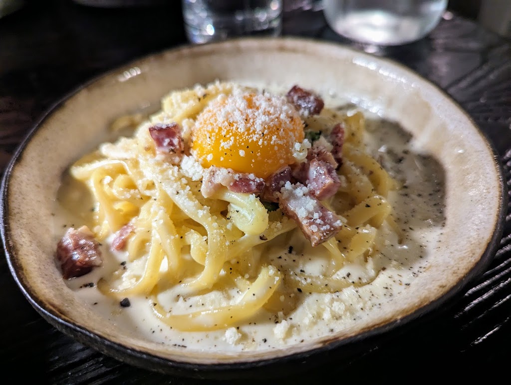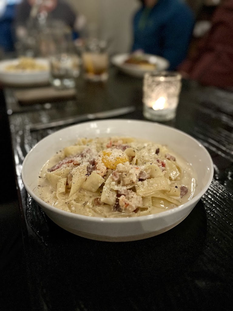Amazing quality food. Carbonara was great, my family loved the gnocchi, sacchetti, and chicken dishes as well. Truly top notch food. Recommend making a reservation.