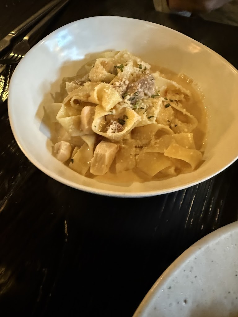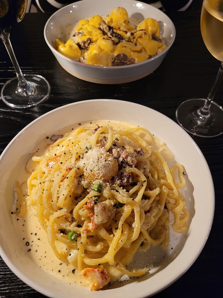 First visit (of many to come) to a smoking small Bistro with a selection of tasty options for foodies. We had the smoky complex gnocchi and super savory black truffle sacchetti. The lobster carbonara is...Wow! Appetizers, entres, desert. All YUM! Supported by warm, super friendly and attentive service.