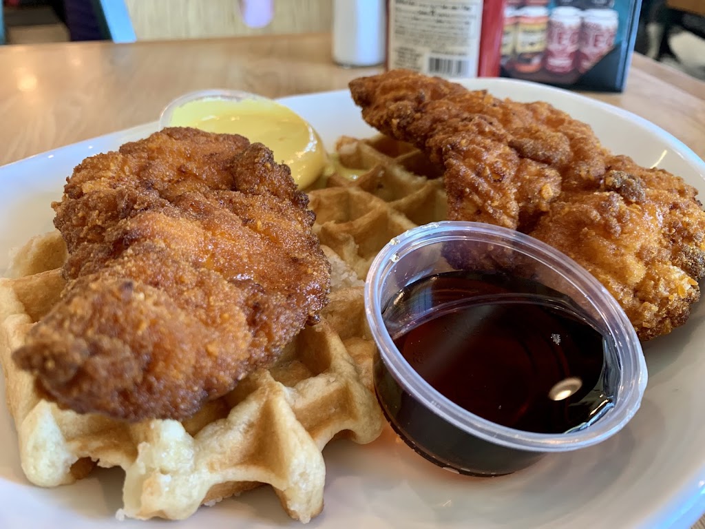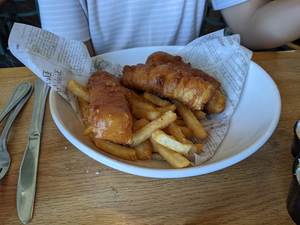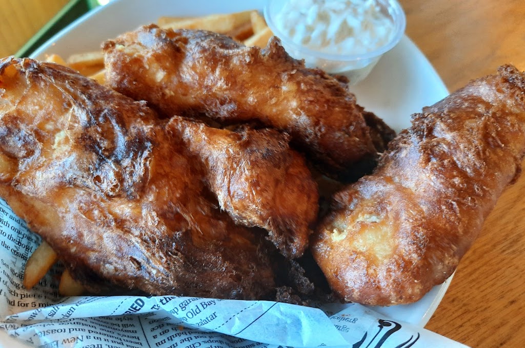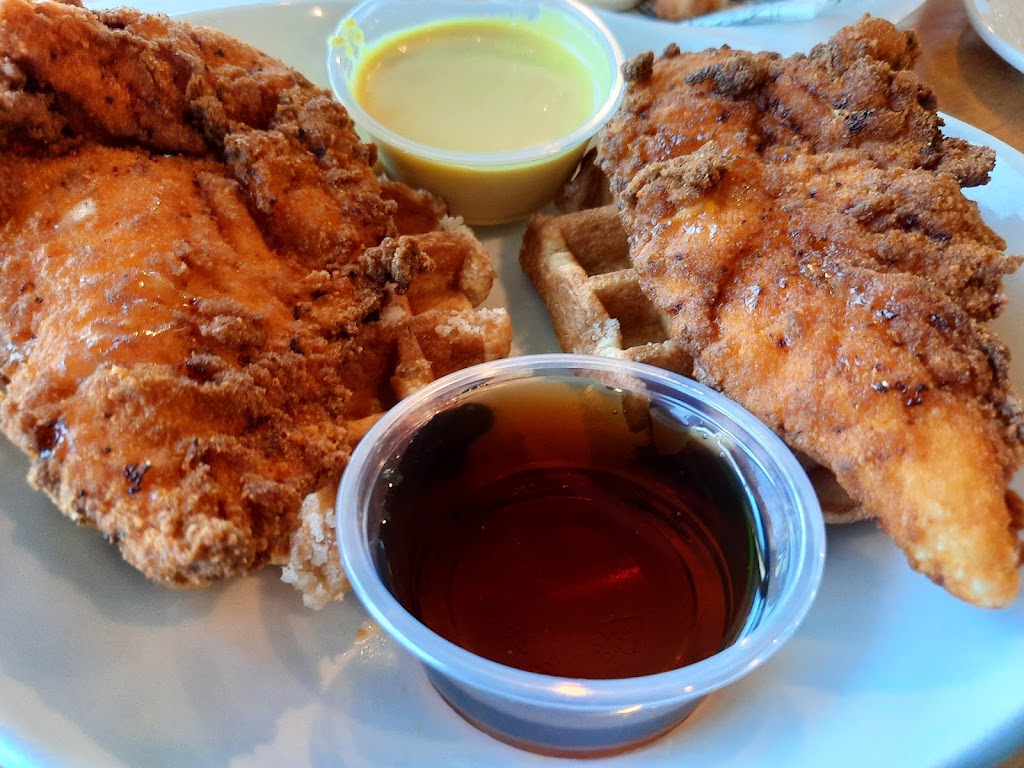 Fox River Brewing Company is a huge, self contained, restaurant which is adjacent to the Fox River Mall food court. It has a bar in one corner and an open kitchen in the other. In between, is a wide open dining area with many regular tables. The menu has a wide variety of choices, so I wondered about execution. Thus, I was pleasantly surprised by our piping hot dishes and their excellent textures. The flavors were spot on as well. I had chicken and waffles, and my cousin had fish and chips. We loved them both. The fish consisted of big, flaky, dark beer battered, cod fillets which held together nicely without being greasy. So, the fish and chips descriptor is accurate. The chicken was crispy and the breading was well seasoned. Either dish is a great choice. The staff was friendly and responsive. They brew their own beers and have a nice cocktail menu as well. I'm not much of a shopper, but this place might turn me into a mall rat. You know how you catch a rat, right? You put out good cheese! Of course, the curds there were good too. Nibble, nibble, zap!