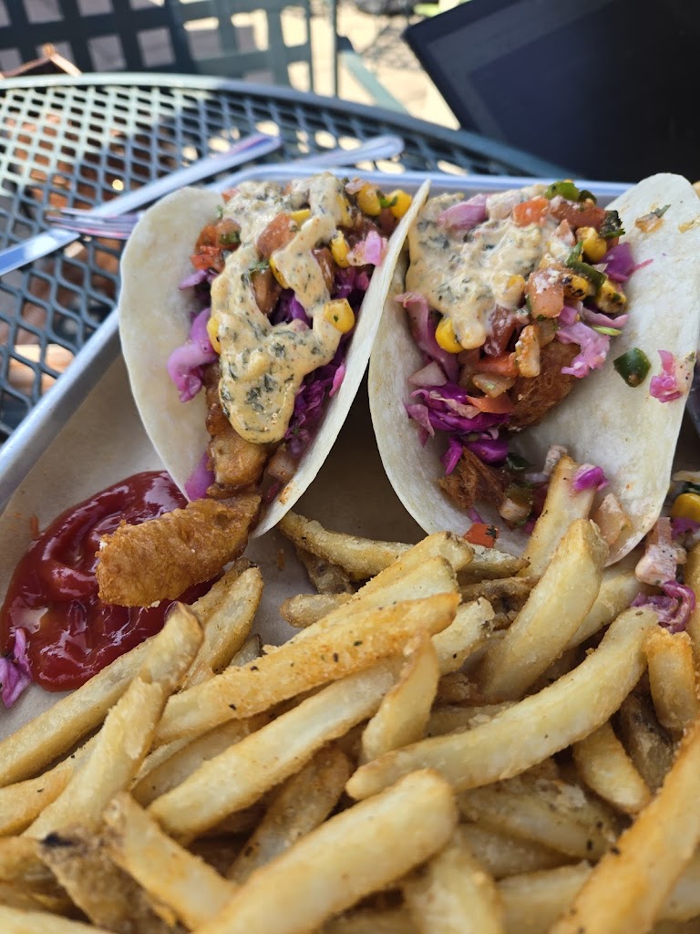 Super good food, drinks, and service. My group got the pretzels, shrimp basket and the shrimp tacos. The shrimp tacos were absolutely delicious as well as the pretzels. The (seasonal) blueberry beer was refreshing and delicious. As well as the cervezas