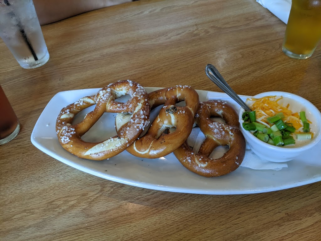 Lousy service. Waitress for got the sauce for a sandwich. Halfway into the meal I reminded her and she still never brought it. Bavarian pretzels were very dry. Womens bathroom had used paper towels on the floor and were ending up outside the door. Would not recommend this place.