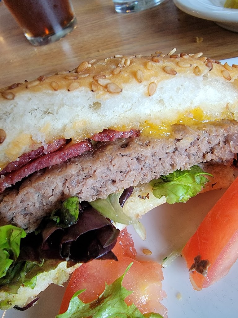 Burger was very watery and did not taste very well. Chicken wrap was nothing special. Packed full of cucumbers but not much for chicken. Homemade chips were just seasoned sliced potatoes but they were good. However way too many for two people. 2/10 would not recommend this place for price. Paid over $52 for less than mediocre food.
