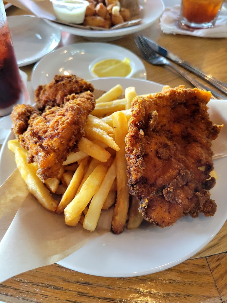 Food was mediocre. Too many French fries served, one helping could have fed three people! Wait staff could be better trained. Never came back to see if we wanted refills, had to flag down! Restaurant is clean and comfortable but needs more menu selections.