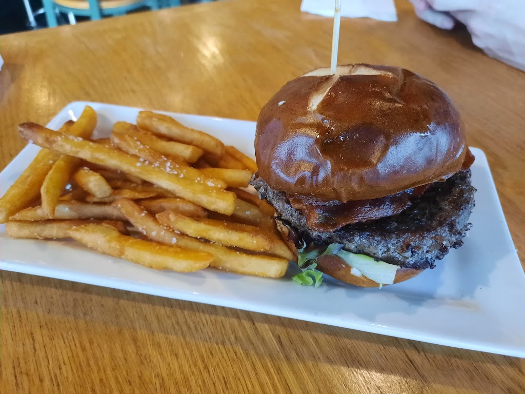 We were greeted by friendly staff who sat us down right away and our server was friendly, helpful amd knowledgeable. I ordered one of their ipa beers which was really good and flavorful! Food came out quick and was hot! Our food was average bar food. Hamburger came out over cooked and dry. Fries were just yiur run of mill frozen fries out of a bag. Again I guess I was expecting a little better better quality from the reviews. Don't get me wrong, it was good bar food. If I lived in the area I would come back for the atmosphere and beer and maybe try more of their food options.