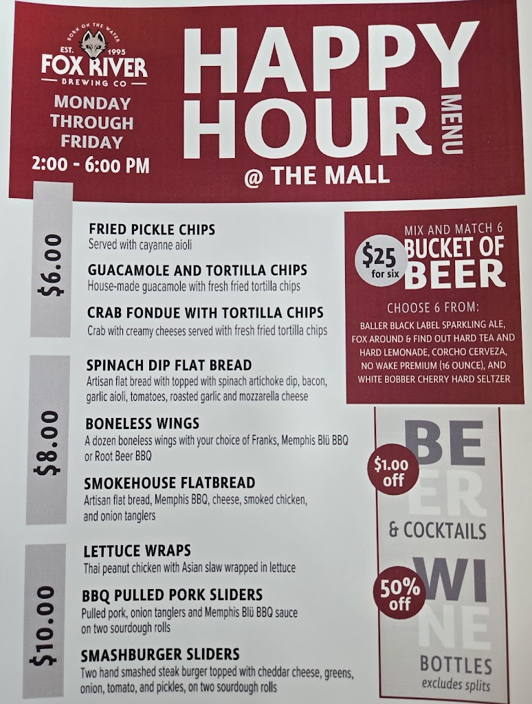 Beer is good. Prices are as expected. It’s nice to have an establishment that serves alcohol in the mall. $14 Cheese curds were overcooked and served to us like they were fine. Nothing like eating breaded nothing… yum. Seriously you can’t see all the cheese exploded out? What a Wisconsin sin.