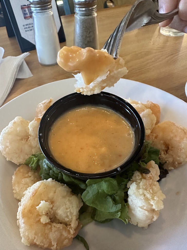 This time when I was there I thought they had some new beer options and I tried the shrimp tacos which were good! The shrimp is covered in what they call, “bam bam” sauce and it has a little spicy bite to it, but flavorful.