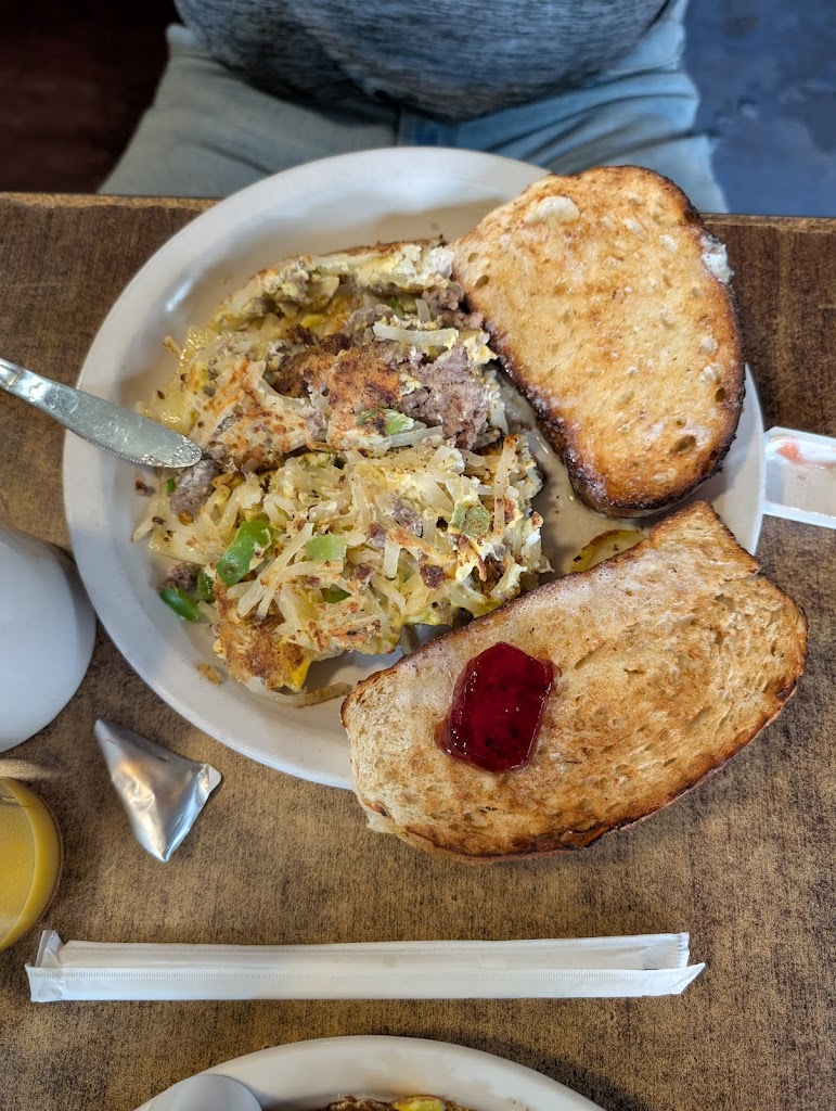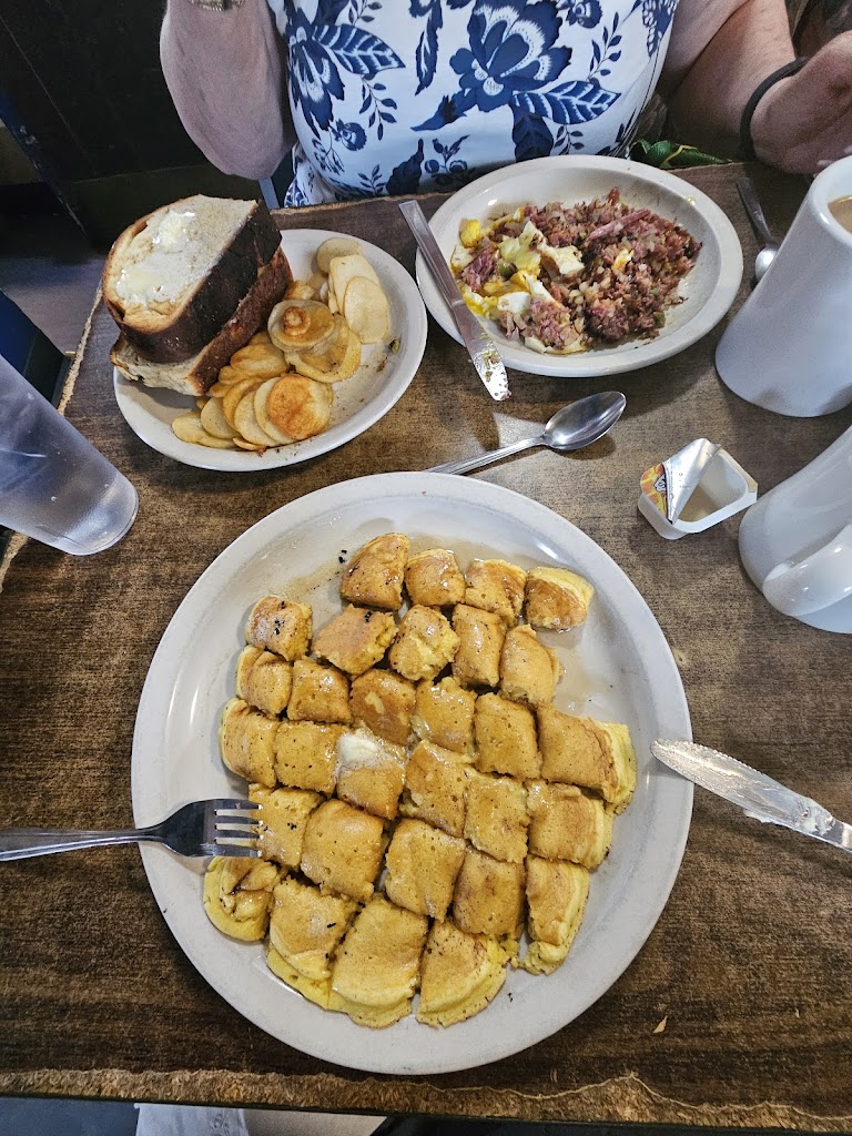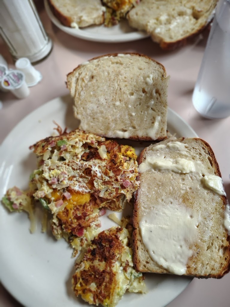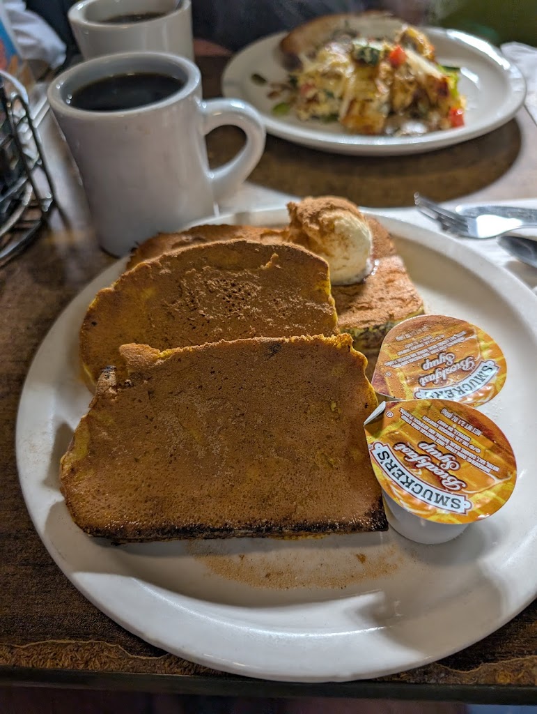 Breakfast took a while to get to the table, but the portions were large, the bread was homemade and you didn’t go home hungry or broke.
