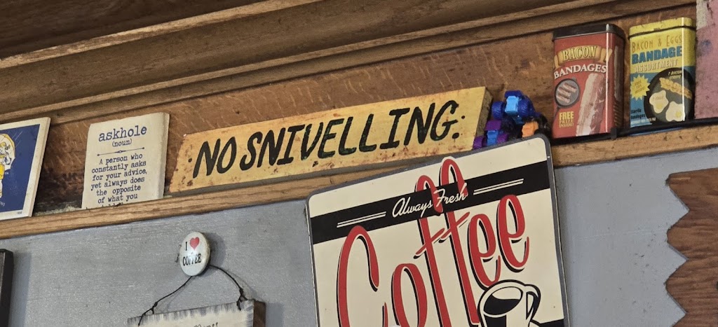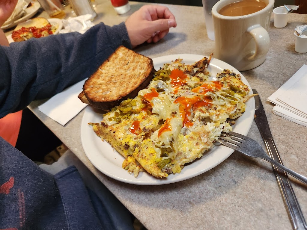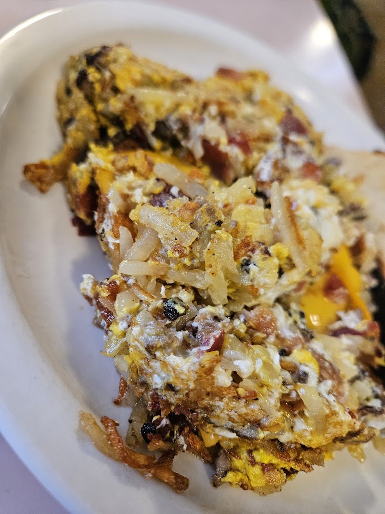 The food? Oh, it’s not just food—it’s the culinary equivalent of a bear hug from your grandma if your grandma also had a tattoo sleeve and a frying pan bigger than your ego. The world-famous Trash Can Breakfast Special is less a meal and more a dare. Eggs, hashbrowns, meat, veggies—basically everything except your bike chain tossed together in glorious harmony. Spoiler: we all ordered it. Spoiler #2: none of us regretted it, except maybe our arteries.