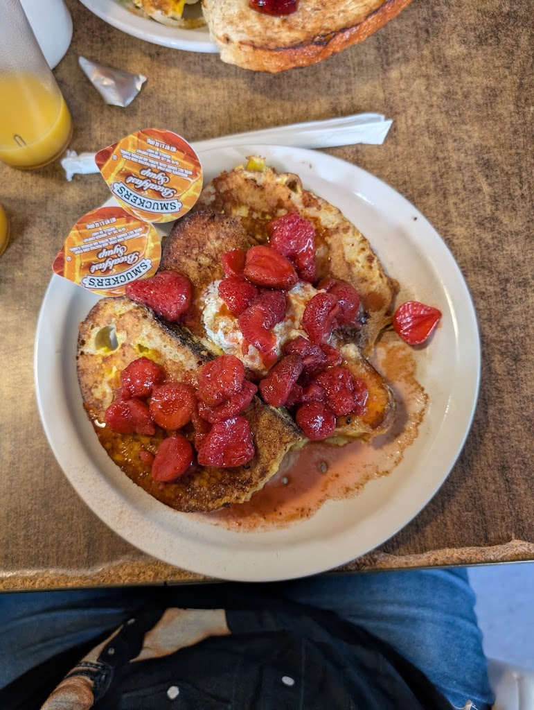 Went on a Sunday just before noon, be prepared for a wait, but the food is great. Service is kinda lacking, but that's because they're serving the rest of this busy diner. Definitely order their cinnamon roll! Best one I've tasted yet, deliciously cinnamony, soft, and warm. HUGE homemade toast, you get your money's worth.